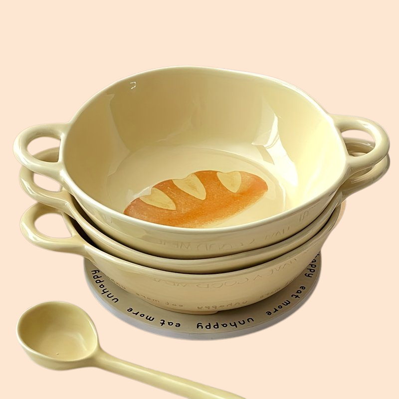 クリーム色の可愛い丼、お皿、カップが1人分